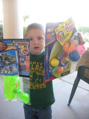 We celebrated Easter on Saturday cause Chad and I both had to work Easter Sunday. It was so much fun, we colored eggs and did a HUGE Easter egg/toy hunt. We had Jamie and Kaiden over and my sister in laws Ashley and Jamie and Jamie's son Jamison over too. Then Sunday Logan got a visit from the Easter bunny himself, who provided him with lots more fun stuff.